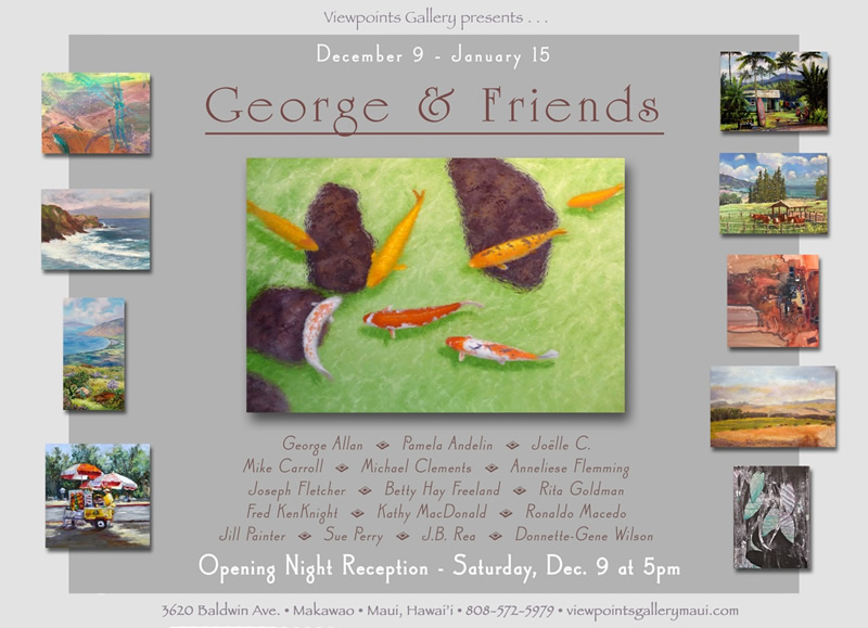In homage to his many contributions to the Maui arts scene, we asked George to invite a group of fellow artists & friends to take part in his annual December show at the gallery.
